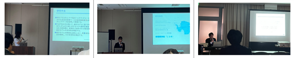 2024/5/27-28に金沢で開催された日本船舶海洋工学会 令和6年 春季講演会において,当領域の博士前期課程の学生3名と教員2名が発表を行いました.発表を行った研究及び発表者(〇印)は以下の通りです.