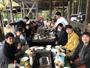 Saturday, October 28th, the lab trip was held at Kyoto-shi Keihoku Shinrin Park. All students and teachers enjoyed BBQ, mushroom harvesting, and making pizza there.